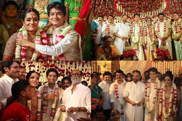The wedding of well-known Tamil film producer and financier G.N. Anbu Chezhian's daughter, A. Sushmita with R. Sharan, the son of retired IAS officer C. Rajendran, was a star-studded affair with several top stars, including actors Rajinikanth, Kamal Haasan and Prabhu turning up for the event.