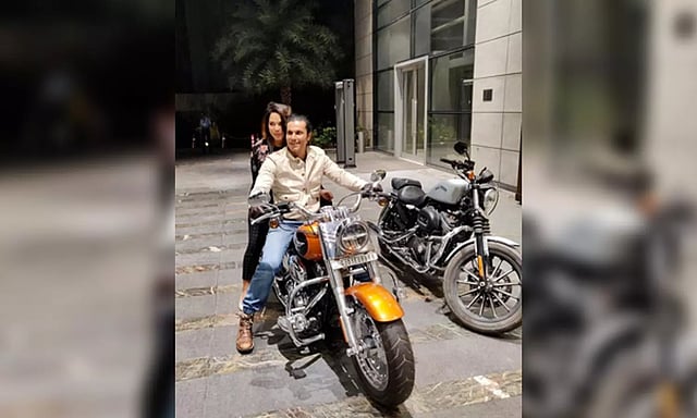 In the 1st picture, he can be seen sitting on a bike with his wife. The second picture is from their reception.