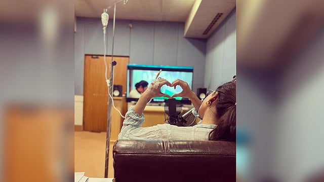Sharing a picture from what look liked a dubbing session Samantha wrote: "Your response to the 'Yashodha' trailer was overwhelming. It is this love and connection that I share with all of you, that gives me the strength to deal with the seemingly unending challenges that life throws at me."