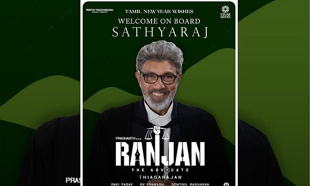 The production house said, "Tamil New year wishes. Welcome on board #SATHYARAJ. A #DirectorThiagarajan film... @actorprashanth as #RANJAN the advocate. A painful love, wholesome and rooted court drama..."