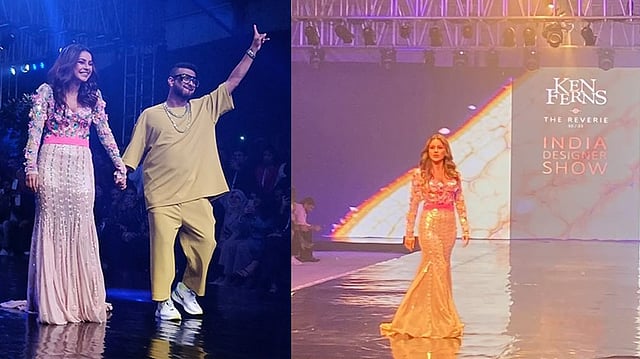 Fans could not keep calm at the appearance of the reality TV star and burst into a huge round of applause and hooting. In a memorable moment of the fashion night, the 'Honsla Rakh' actor cheered the entire hall up by randomly breaking into a little dance on the ramp with Ferns by her side.
