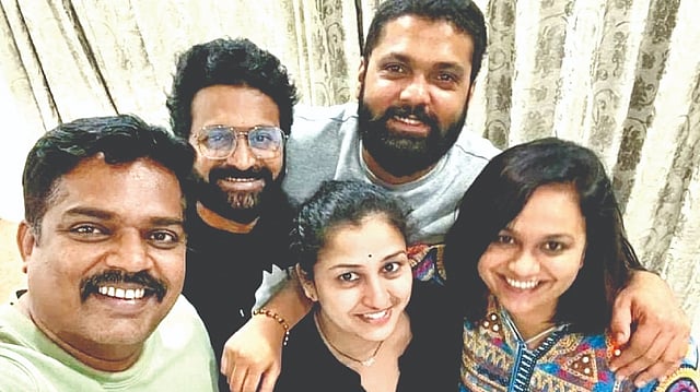 Rishab has shared an old picture of himself with Rakshit, actor Pramod Shetty, Pragathi Shetty (Rishab’s wife) and journalist-turned-director Sheetal Shetty.