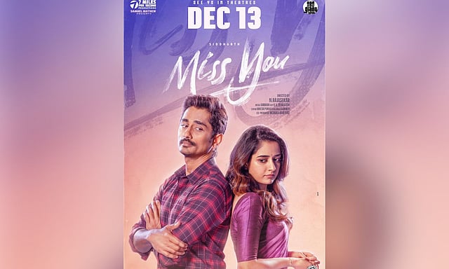 Produced by Samuel Mathew under the banner of 7 Miles Per Second, and directed by N Rajasekar, the film promises a youthful and energetic romantic tale. Apart from Siddharth, Miss You also stars Ashika Ranganath, Bala Saravanan, Karunakaran, Sastika and Ponvannan, among others.