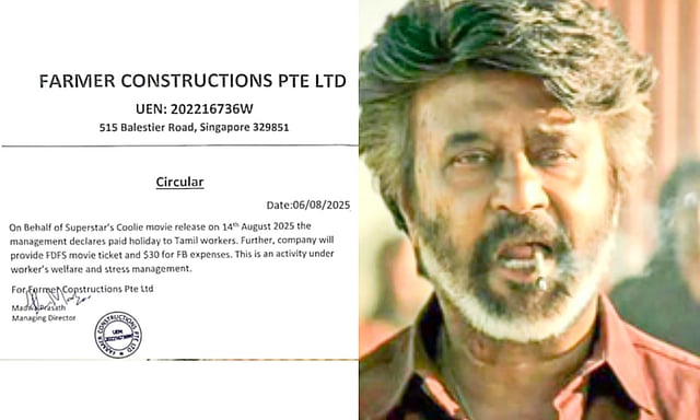 CHENNAI: If reports doing the rounds on social media are to be believed, a firm in Singapore has now announced a paid holiday for its Tamil workers to enable them to watch Superstar Rajinikanth's 'Coolie' on the first day of its release!