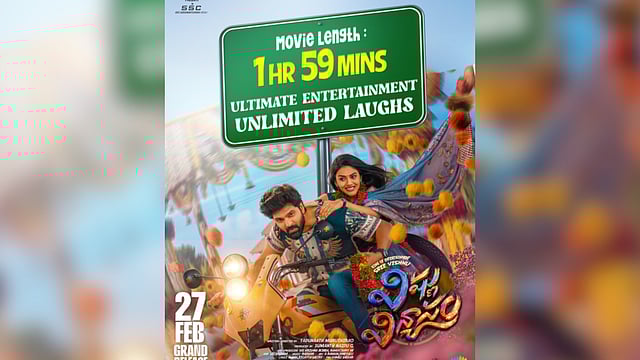 HYDERABAD: Disclosing that his upcoming film 'Vishnu Vinyasam', directed by Yadunaath Maruthi Rao, would have a run time of 1 hour and 59 minutes, actor Sree Vishnu on Thursday promised that although the film's length looked like it was on a diet, the entertainment it provided would be like a full meal with extra dessert!