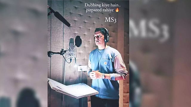 The actor shared a photo of himself, standing in front of a monitor, with the caption: "Dubbing kiye hain... Pirpared rahiye MS3."
