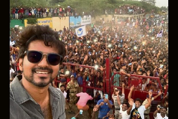 Tamil superstar Vijay's new selfie with fans has been trending on social media. The actor clicked the selfie with fans in the town of Neyveli.