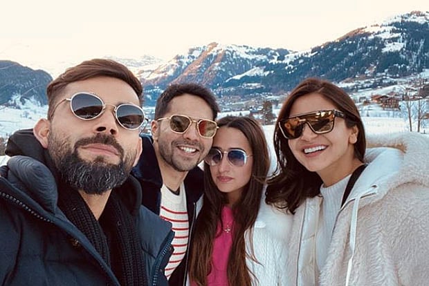 Not just Virat and Anuska, Varun also bumped into the Kapoor sisters Karisma and Kareena in Switzerland. Sharing a cute photo with the two sisters posing with Varun in between, Karisma Kapoor wrote on Instagram: "See who we met! @varundvn #holidayseason #snowydays".