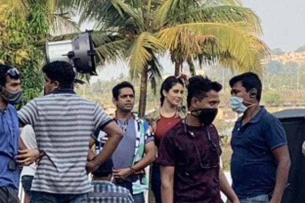 In pictures released from the location shoot in the Goa,Warina is seen consulting her script along with co-star Sharib. Warina makes a casual style statement in a floral short and T-short while Sharib flaunts biceps in a tightly rolled-up shirt.