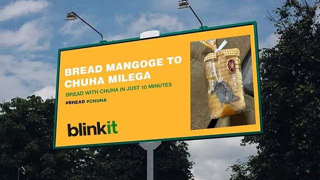 Additionally, the user shared a screenshot of a conversation with Blinket's customer support team and a picture of a billboard that stated, "Bread mangoge to chuha milega," a reference to Zomato-widely Blinkit's popular Doodh Mangoge, Doodh Denge campaign.