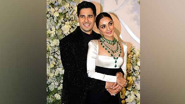Tinsel-town's newlyweds Sidharth and Kiara looked all things classy at the reception. Kiara wore a beautiful black and white gown with a statement neckpiece while Sidharth looked dapper in a shimmery black suit.