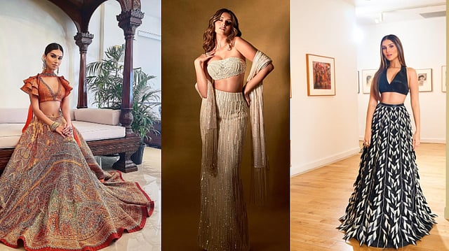 While Tara has worn fusion lehengas many times, she proves with this ethnic look that she can flawlessly carry a traditional and heavy outfit all the same. Covered entirely in exquisite Indian patterns, the outfit's fluttery top attracts equal attention. Not to forget, Tara sporting a Bindi and long traditional earrings make her look another level of drop-dead gorgeous.