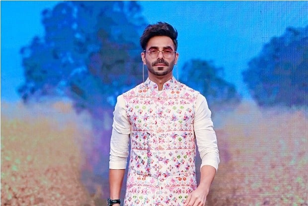 Radhika and Aparshakti were showstoppers of designer duo Sukriti and Akriti's show. They unveiled their "Neo-Phulkari" collection that focused on the traditional, vibrantly, coloured, embroidery technique which originate in Punjab. Keeping the silhouettes Indian, the duo have used organic fabric as the base and naturally dyed gota work. The collection comprised of black and white cropped pants, kurta, jacket, cropped jackets, white-on-white embroidered kurtas, ghararas and flared empire line dresses. There were sherwani/lehenga duo in ivory, peplum jackets, bralette and lehengas and cholis.