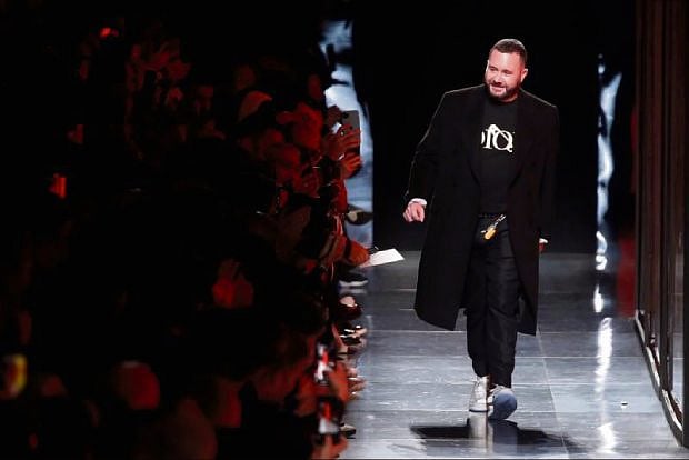 The collection, designed by Kim Jones, featured a collection of heavy coats, long silky shirts, paisley motifs and embroideries in shades of grey and blue.