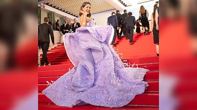 She is accessorized with minimal accessories and soft glam. Hina Khan debuted on the prestigious red carpet of the Cannes Film Festival in 2019 for the poster launch of her Hussein Khan film 'Lines'.