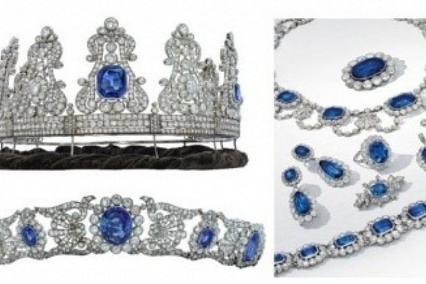 The collection also includes the sapphire crown of Maria II Queen of Portugal, set with a remarkable Burmese sapphire in the centre, says the auction house.