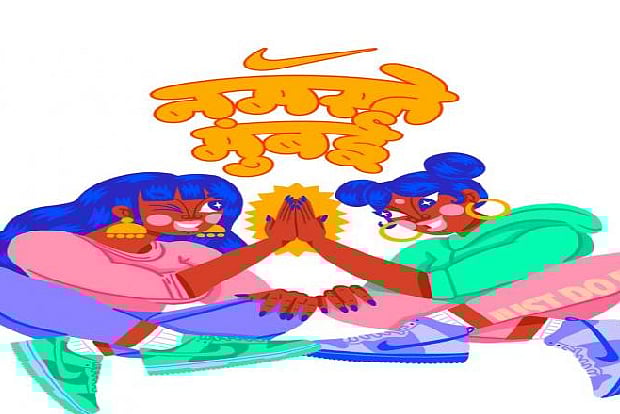 "Our design philosophy mainly focuses on retro-futurism- which means the visions of the past about the future. We adore sci-fi and comic books, and we've tried to create art that clubs both these aspects in cohesion with Indian culture to build something fresh and unique. When Nike approached us with the vision of a grand Mumbai launch, we knew instantly we wanted to bring the city's spirit, hustle, and soul to life. We want to mix technology with our art, so we've also added an AR feature, which can be experienced in the store through the filters we've created that bring the illustrations to life, and those are the designs we love the most as well! Mumbai and Nike are tied up in a beautiful way that both encourage you to turn your dreams into reality- that's what we hoped to do with our designs, too." said Boomranng Studios.