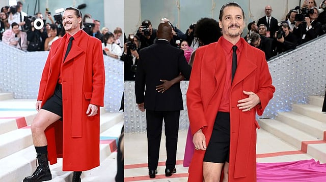 WASHINGTON: 'The Last of Us' star Pedro Pascal painted the red carpet of the Met Gala this year literally red with his sartorial choices! The actor wore a red vintage shirt topping it with a red overcoat from Valentino's collection. He accessorized it with a skinny black tie, black shorts, socks and combat boots.