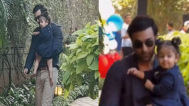 In a video captured by a Mumbai-based paparazzi, Ranbir can be seen carrying Raha in his arms as they attend the party.