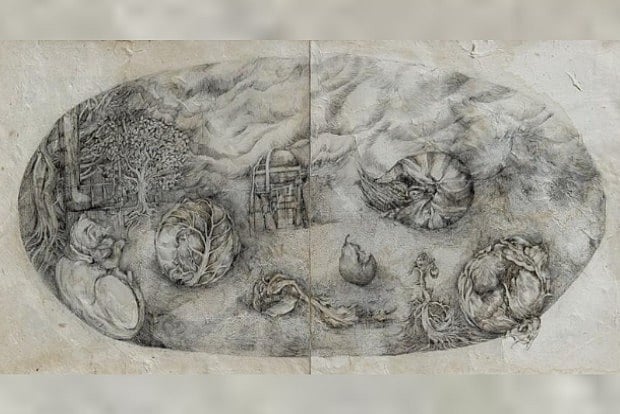 She also added, "As a curator, I found this thematic overlap between the two to be interesting and relevant: Romano explores the impact of past ancestral generations on land while Patpatia envisions a surreal alternate reality or dystopian future as a result of it. The seed of the idea is the same, but the techniques and treatment of the works are different. Both create beautifully stunning and poignant works as a result! I am excited for the audience to come and experience the show and this synergy lives in action."