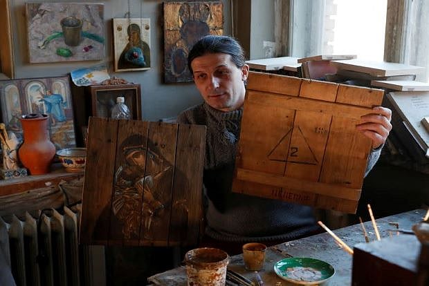 “An ammunition box - like a coffin - is taken from under the ground, where it was previously stored. Once it is opened, death breaks out of it and destroys everything around,” Klymenko told Reuters in his workshop.