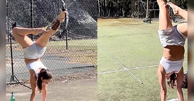 The video was shared on Instagram by Guinness World Records and captioned it, "Farthest arrow shot using feet 18.27 m (59 ft 11 in) by Shannen Jones". In the clip we see Jones performing a handstand and shoots an arrow at the bull's eye using her feet.