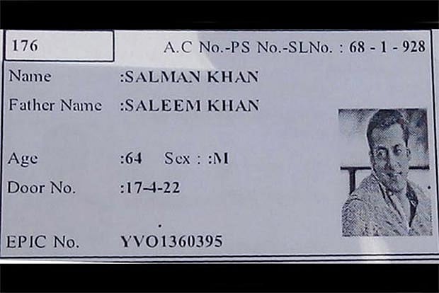 It is not a case of photo-shopping, as one might presume. A voter had turned up with an officially issued identity card carrying the name and picture of Salman Khan at the Hyderabad civic polls in 2016. The Greater Hyderabad Municipal Corporation (GHMC) had mistakenly placed the Dabangg star’s picture on someone else’s voter ID card. Well, it seems that the picture has surfaced on the Internet and fans of the actor have been sharing it online. According to the slip, apart from the age, nothing seems to be a problem. In fact, the father’s name too reads as Saleem Khan.