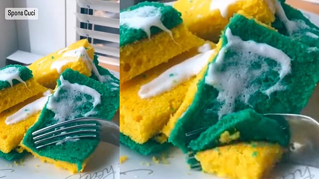 CHENNAI: Way back there used to be the trend of 'everything is edible' and that trend is back with a viral video that shows a guy cutting a piece of cake that looks like a pile of dishwashing sponges.