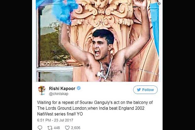 Ahead of ICC Women’s World Cup 2017, The actor wished the Indian team and tweeted, “Waiting for a repeat of Sourav Ganguly’s act on the balcony of The Lords Ground,London,when India beat England 2002 NatWest series final! YO,” along with a photograph of Sourav Ganguly’s famous celebratory moment where he removed his shirt and waved it at the fans.