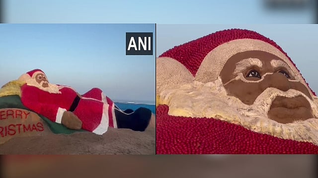 ODISHA: World-renowned sand artist Sudarsan Pattnaik, on Saturday, created a sand sculpture of Santa Claus, at Gopalpur Beach on the occasion of Christmas 2022. On the sand art, Pattnaik wrote, "Merry Christmas."
