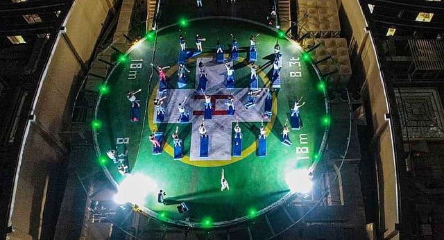 The event, organised on Tuesday night, when the Strawberry Moon marked the lowest full moon of the year, was organised by VPS Healthcare on the helipad of its flagship facility -- Burjeel Medical City, ahead of the International Day of Yoga on June 21.
