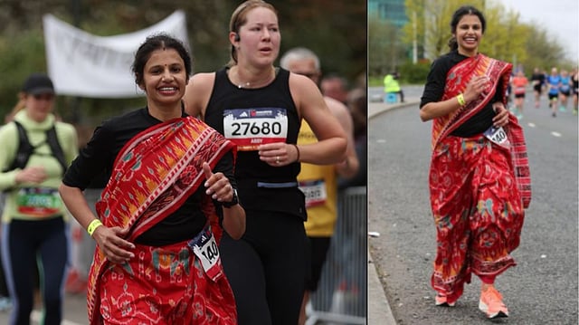 ''Madhusmita Jena, an Indian living in Manchester, UK, comfortably runs Manchester marathon 2023 in a lovely Sambalpuri Saree. While proudly showcasing her Indian heritage, she also presents an inviting perspective on the quintessential #Indian attire," tweeted the Friends of India Society International (FISI) UK diaspora organisation.