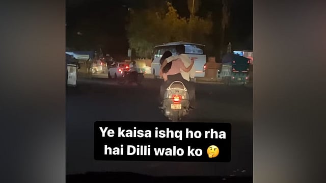 Shared on Instagram by a woman named Shalu Kashyap Taneja. The caption of the post read, "Isk Risk on Delhi roads (Love risk on Delhi)."