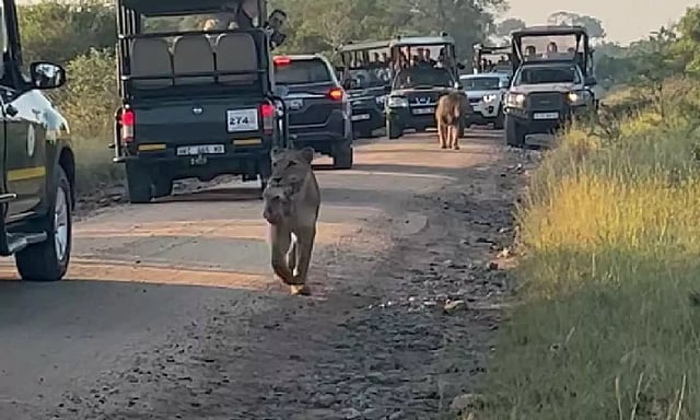 The sight of a lioness holding her pup in her mouth and crossing a road is quite rare. However, several travellers in South Africa's Kruger National Park were extremely fortunate to see this and capture it on camera.