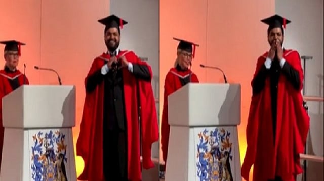 The video shows a young graduate Ashwini Nalawade walking on the stage to collect his degree and his little daughter very cutely interrupted by shouting "Congratulations, daddy".