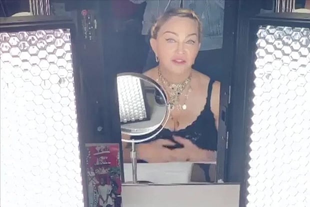 Madonna captioned the video: "Do Megan (sic) and Prince Harry want to sublet my apartment on Central Park West?? .................. #madamextheatre #thelondonpalladium."