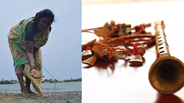 Women prawn pickers from Pazhaverkadu will share their experiences of working on the shores; these women catch prawns by hand, wading through the water. Their demanding work requires a deep understanding of the river’s sediment and aquatic life. “If you ask a prawn picker, she can explain how to identify a good prawn. Thangavelu, a goat rearer, will discuss their grazing practices and how they notice details in goats, learned through generations of experience. Sasikumar P, a mukavinai player from Kanchipuram, will explain how his instrument differs from the nadaswaram and the unique way it is played. Lenindhasan and Baskar Manimegalai from Thiruvannamalai will discuss paddy cultivation,” he introduces the speakers.