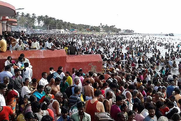 Over three lakh people from various parts of the country thronged "Agni Theertha Kadarkarai" (seashore) and propitiated the departed souls on the occasion.