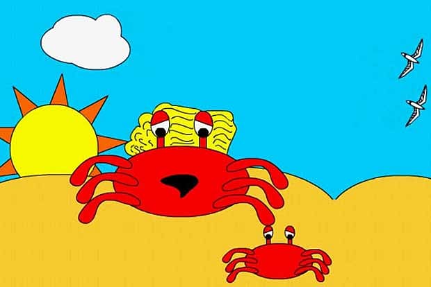 A young crab and his mother were spending the day on a beach’s warm sand. The young crab begins to walk around, but could only walk sideways in either direction. The mother crab scolds him and tells him to point his toes in front of him and walk forwards.