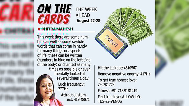 CHENNAI: This week there are some numbers as well as some switch words that can come in handy for many things or aspects of life. These can be written (numbers in blue on the left side of the body) or chanted as many times as possible or even mentally looked at several times a day.