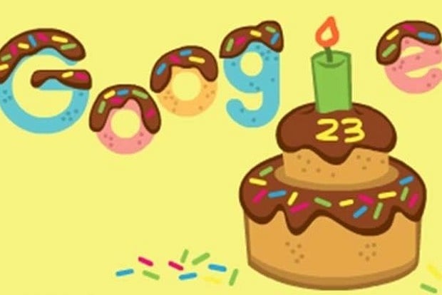 The doodle features a cake with '23' written on top of it. Also, a birthday candle substituting for 'L' in "Google.