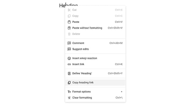 To access the feature, open a Google Doc on web > add a heading (type some content and set to "Heading 1") > right-click the heading > click the "Copy heading link" button > paste the contents.