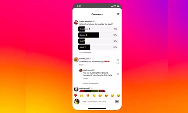 Instagram head Adam Mosseri announced the test on his broadcast channel, noting that polls can be added to comments on regular feed posts as well as reels.