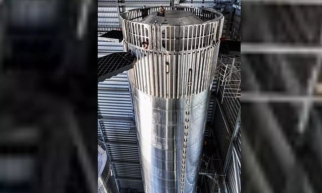 “Vented interstage and heat shield installed atop Booster 9. Starship and Super Heavy are being upgraded to use a separation method called hot-staging, where Starship’s second stage engines will ignite to push the ship away from the booster,” the company said in a post on X (formerly Twitter).