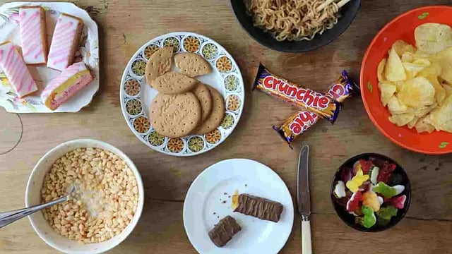 Ultra-processed foods, including packaged baked goods and snacks, fizzy drinks, sugary cereals, and ready-to-eat or heat products, undergo multiple industrial processes and often contain colours, emulsifiers, flavours, and other additives. These products also tend to be high in added sugar, fat, and/or salt, but are low in vitamins and fibre.