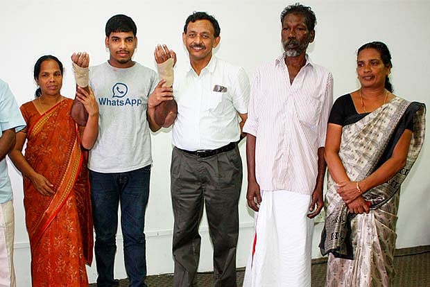 Jith, son of a mason from Kannur, received financial support from philanthropists for the procedure carried out in the end of May. A huge team of doctors including plastic surgeons, orthopaedic surgeons and anaesthetists, immunologists and rehabilitation specialists and transplant coordinators were involved in the case at various levels. The surgery lasted for 14 hours.
