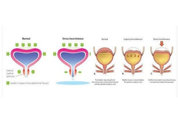 Stress urinary incontinence involves the involuntary loss of urine due to physical activity such as coughing, laughing, or sneezing. It involves a weakening of muscular support at the ureterovesical junction, which causes hypermobility of the urethra during times of increased intraabdominal pressure. When you sneeze, cough, laugh or lift heavy you may have a urine leak. Sometimes while exercise or running you may have a urine leak.