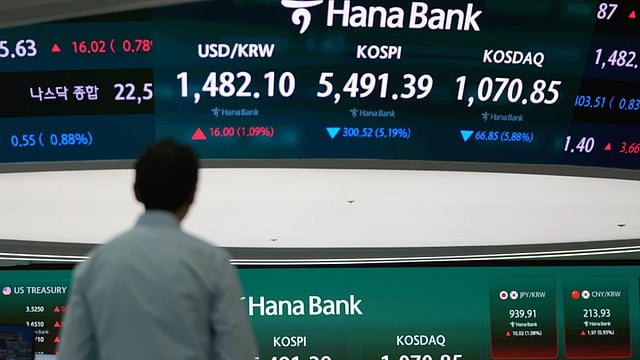 South Korea's Kospi led regional losses, tumbling 8.1 per cent to 5,321.38, causing trading to be suspended, as energy security concerns vanquished optimism over the boost big tech companies like Samsung Electronics and SK Hynix are getting from expanding use of artificial intelligence.