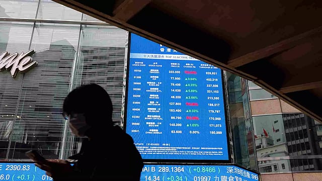 The spotlight in the Asian morning fell on Chinese property developers listed in Hong Kong, which tumbled 2% in part due to a 20% plunge in China Evergrande Group after police in southern China detained some staff at its wealth management unit, the latest trouble to hit the embattled property firm.