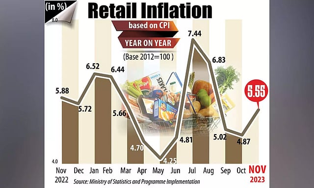 NEW DELHI: Snapping its declining trend, retail inflation rose to a three-month high of 5.55 per cent in November on firming food prices, including vegetables and cereals, though it remains within the RBI’s comfort zone of less than 6 per cent.